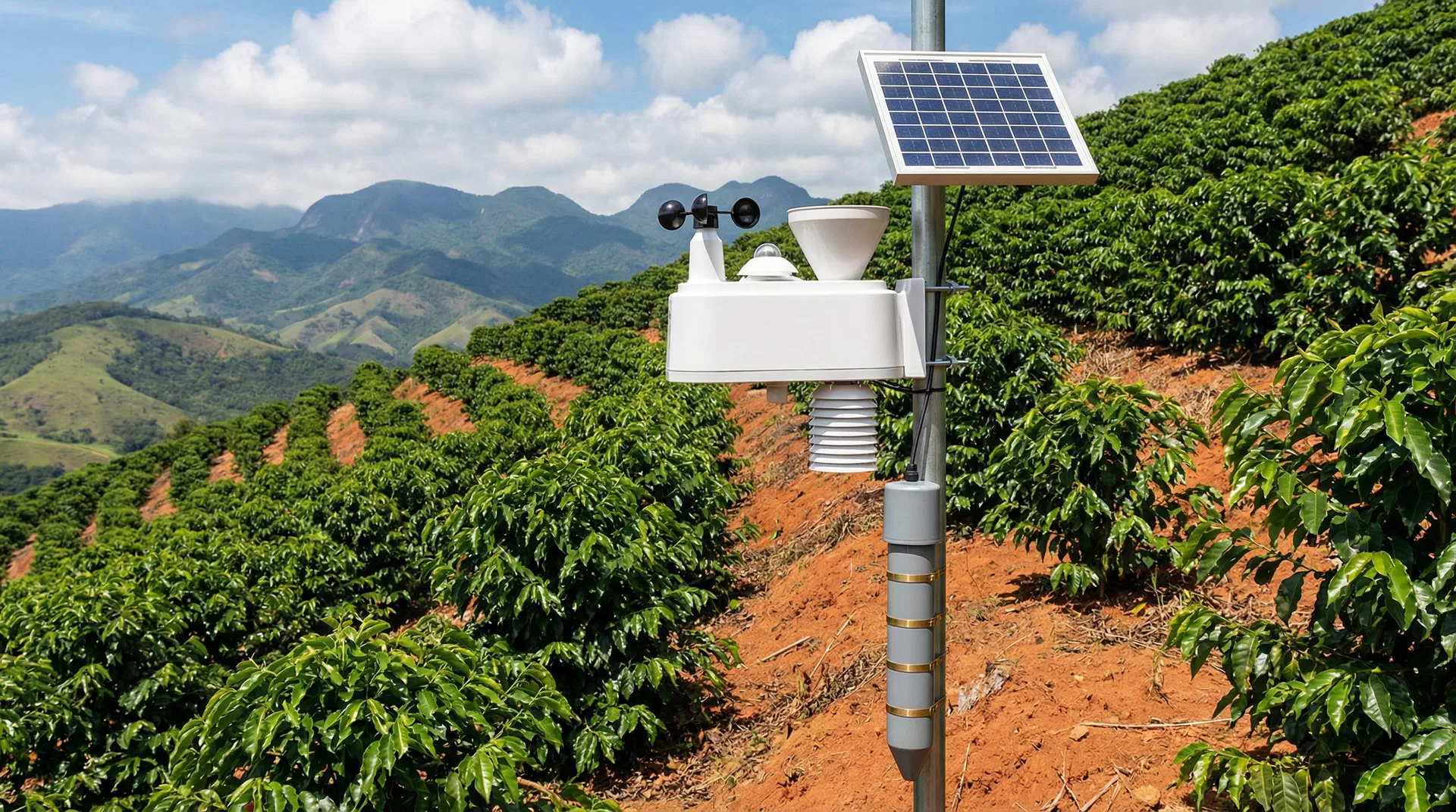 Sistema integrado com estação meteorológica 11-em-1, sensores foliares, sonda de solo multicamada, sensor PAR e 8 câmeras ao vivo.
